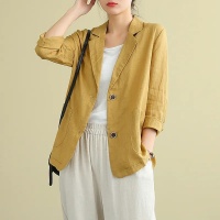 【百搭爆款 超值回饋】春夏新款休閑百搭短款亞麻西裝外套 寬松修腰47-85公斤都可以駕馭